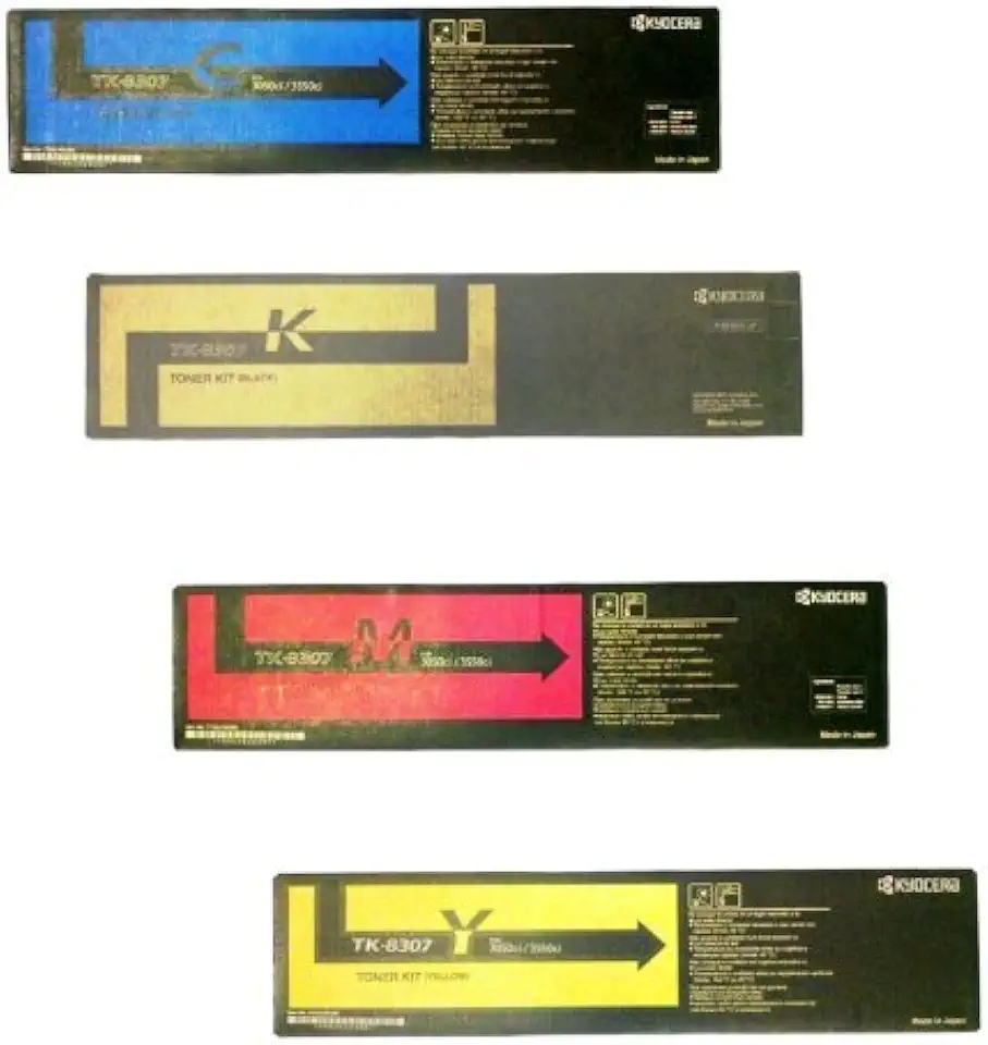 "Kyocera TK-8307K TK-8307C TK-8307M TK-8307Y Toner Cartridge Set (Black Cyan Magenta Yellow) in Retail Packaging